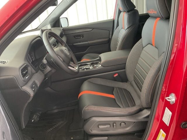 The Passport TrailSport's exterior is adorned in a stunning Red color, complemented by 18 Matte Shark Grey Alloy wheels and a sleek, modern design that commands attention on the road. Step inside and you'll be greeted by a spacious and well-appointed cabin, featuring durable Leatherette and Cloth seat trim, heated front seats, and a power moonroof that floods the interior with natural light.