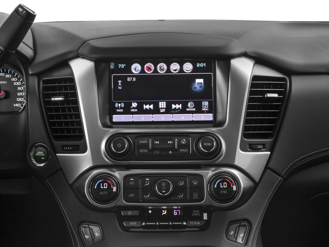 - Audio system, Chevrolet MyLink Radio with 8" diagonal color touch-screen AM/FM stereo with seek-and-scan and digital clock, includes BluetoothĀ® streaming audio for music and select phones; voice-activated technology for radio and phone; and Shop with the ability to browse, select and install apps to your vehicle. You can customize your content with audio, weather and more; featuring Apple CarPlay and Android Auto capability for compatible phone; 5 USB ports and 1 auxiliary jack